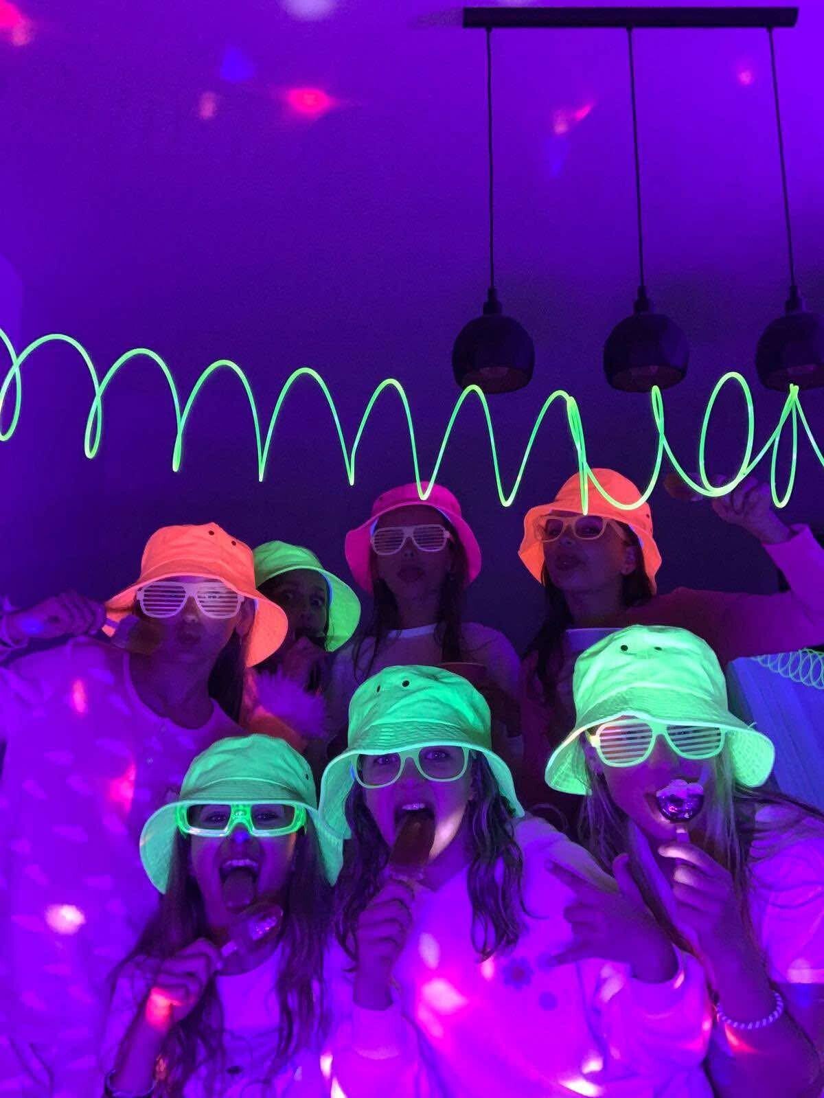 Neonlichten en glow in the dark spulletjes zorgen voor een onvergetelijk sleepover.