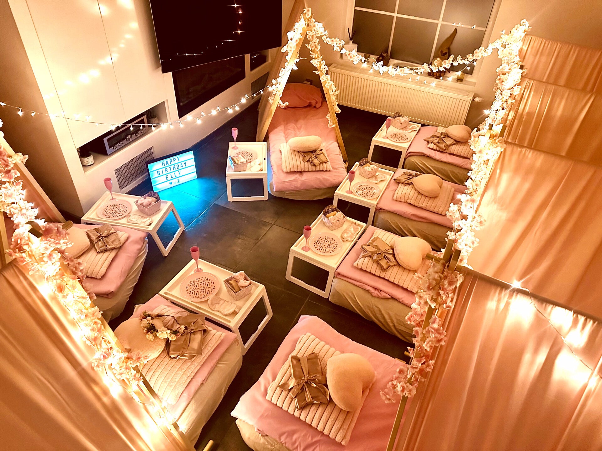 Boek nu het Pink Paradise slaapfeestje en maak er samen met je vriendinnen een onvergetelijke, roze droomnacht van! 🎀✨